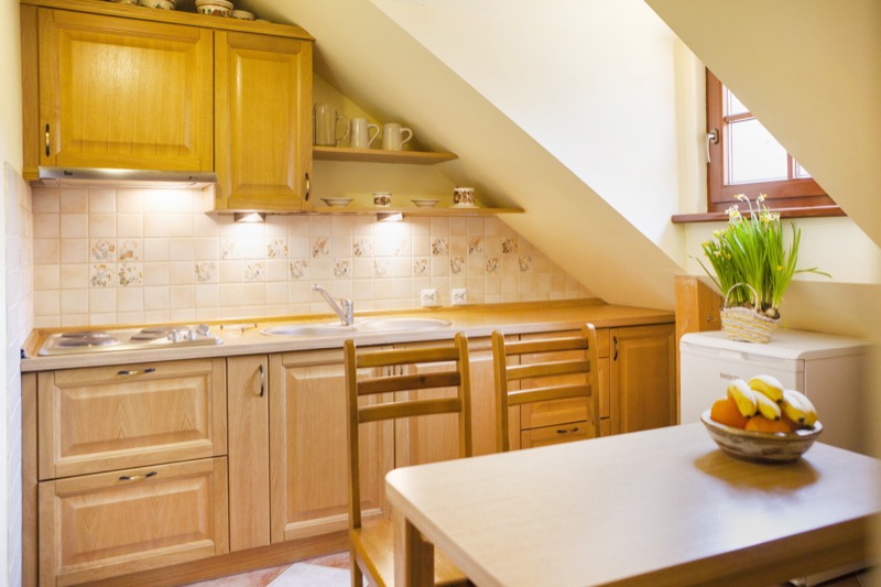 Przestronna, jasna kuchnia dostępna dla wszystkich pokoi typu Premium. W pełni wyposażona z lodówką, płytą grzewczą, tosterem i.in.