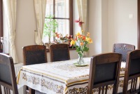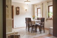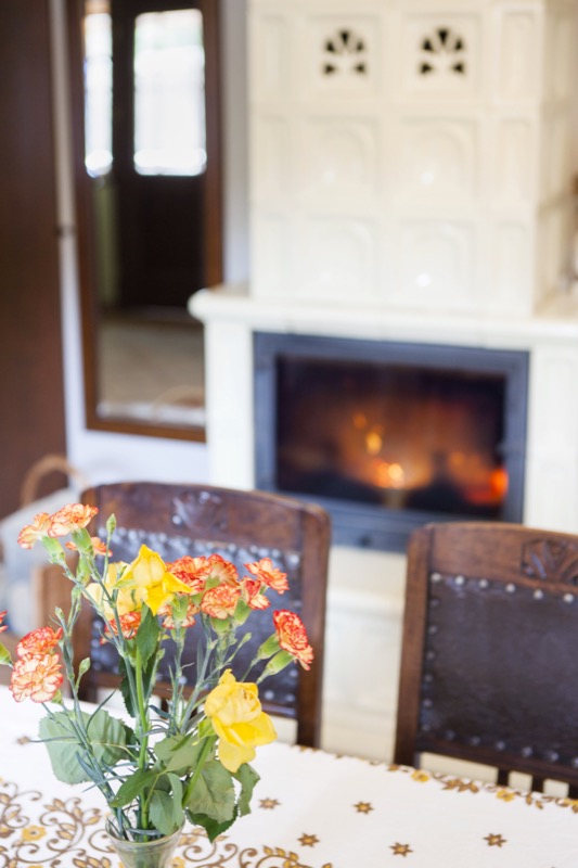 Kameralne miejsce do ogrzania się przy ciepłych płomieniach kominka lub biesiady przy stole.